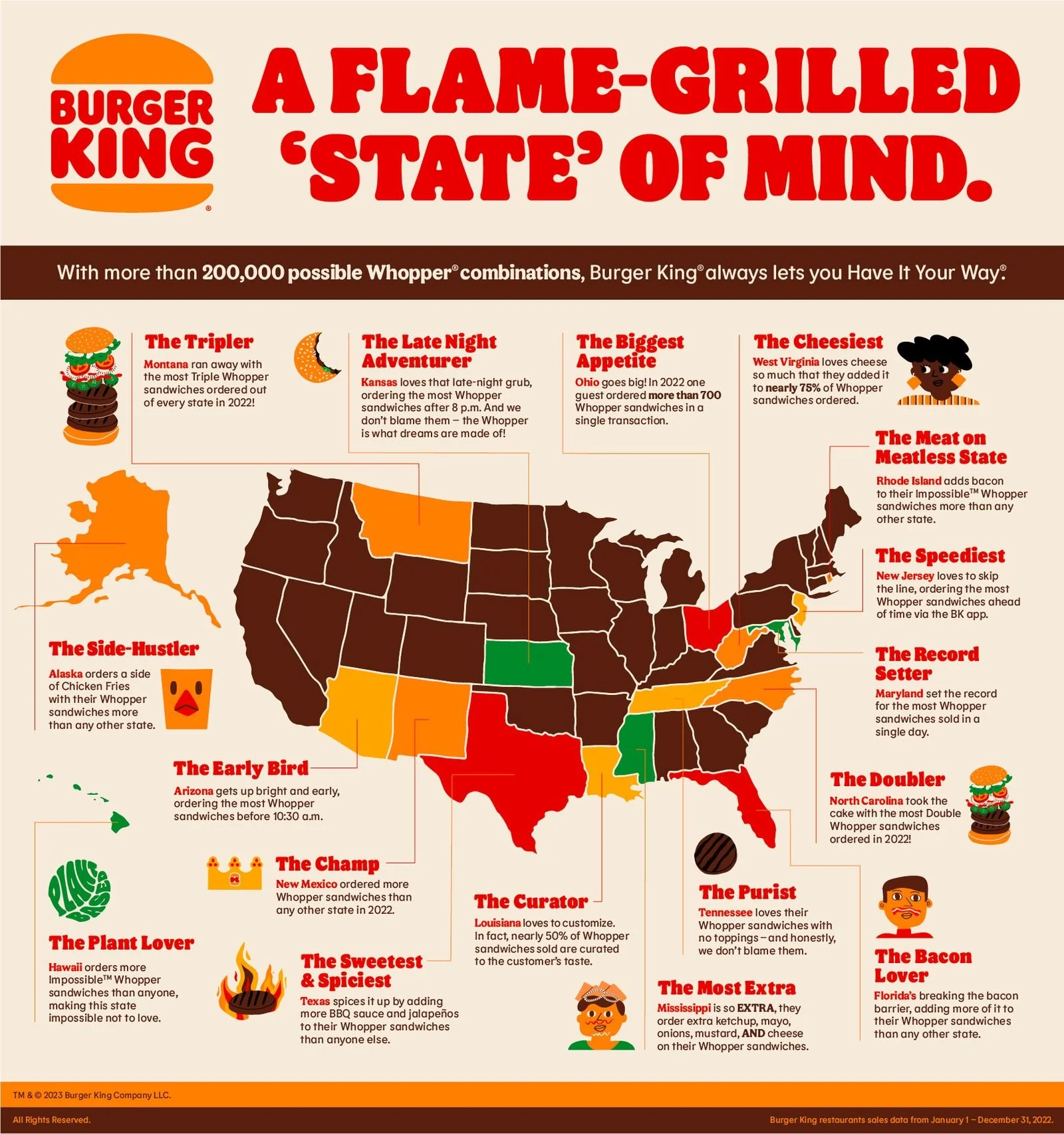 Did you know there are more than 200,000 ways to customize a Whopper®? In true “Have It Your Way” fashion, Burger King set out to educate guests on this little-known fact with a comprehensive brand campaign centered around its flagship flame-grilled sandwich. The task: find a way to drive both media and social conversations (without paid support) in the most visually compelling way possible.